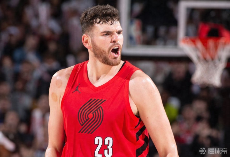 本场比赛,开拓者首发中锋克林根登场31分23秒,12中8高效轰下23分18板7助,此外还有3记盖帽,正负值为+21。