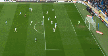 第36分钟,曼城角球开出,斯通斯前插抢点倒地