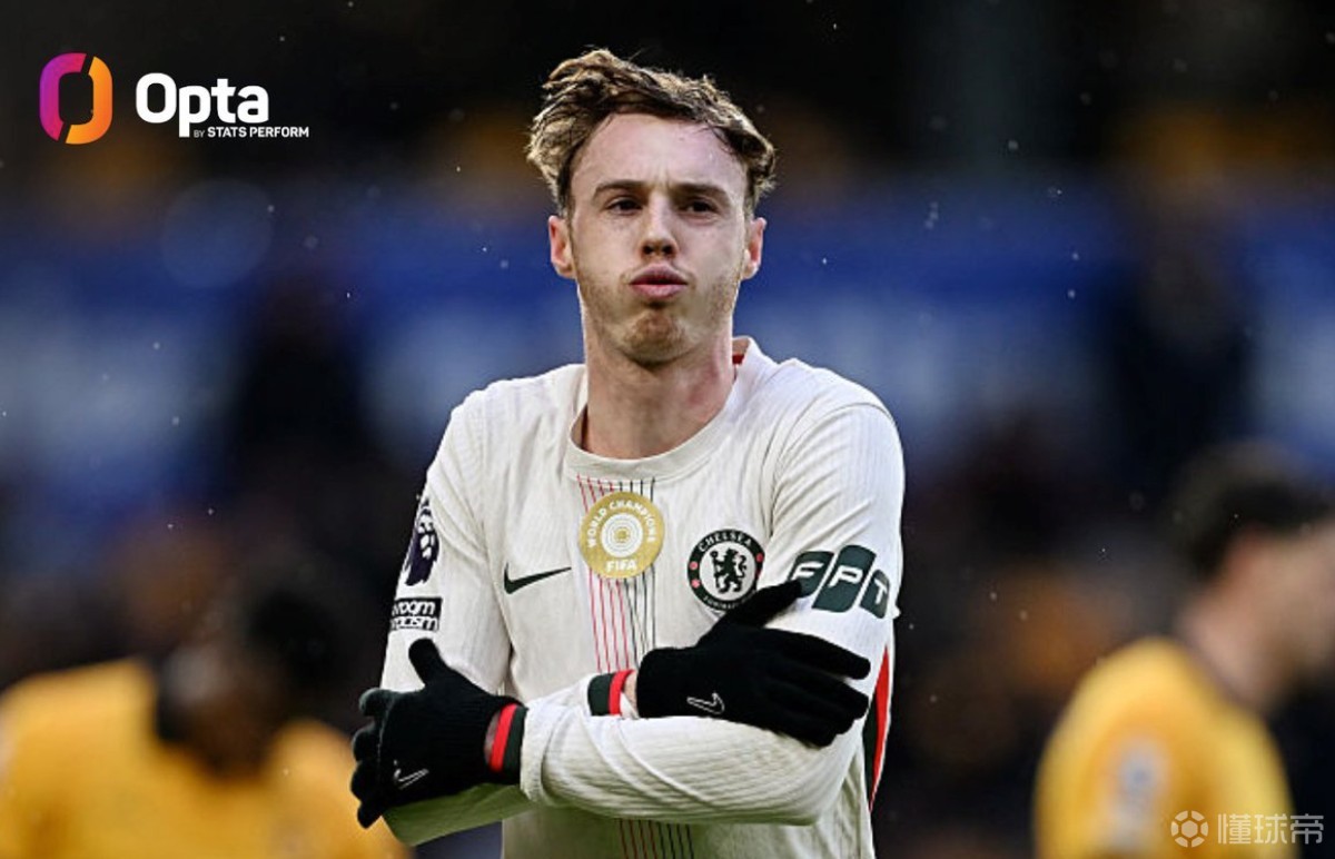 现年23岁的帕尔默本赛季至今代表切尔西出场17次,贡献8粒进球和2次助攻。