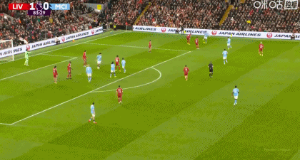 第84分钟,哈兰德头球摆渡,B席门前铲射破门,曼城扳平比分1-1利物浦!