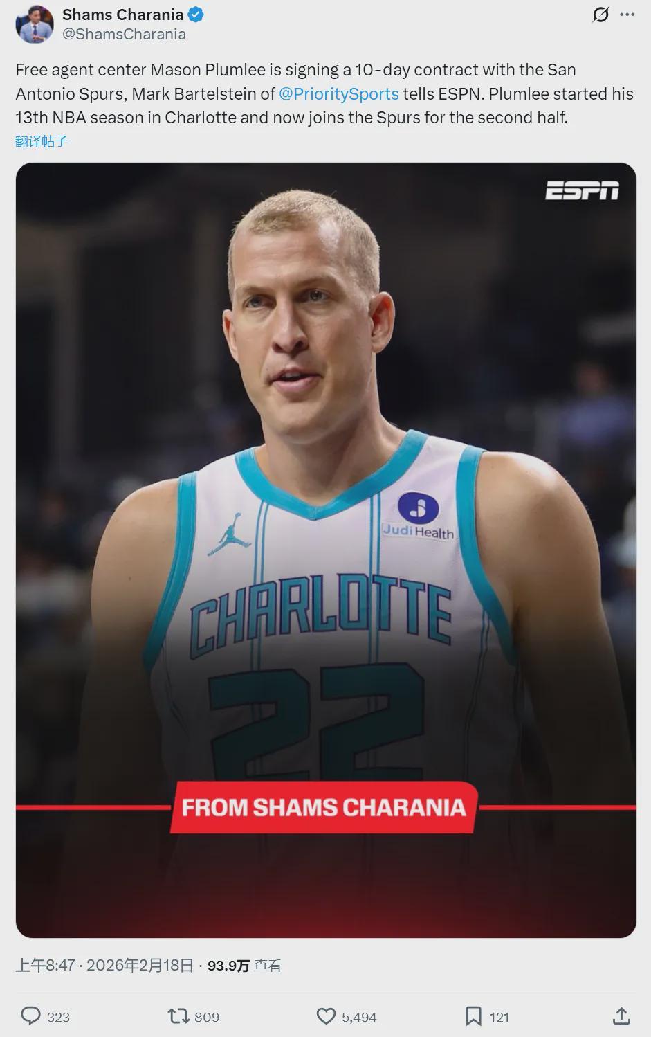 正式签约!大中锋来了!文班亚马等到最强帮手